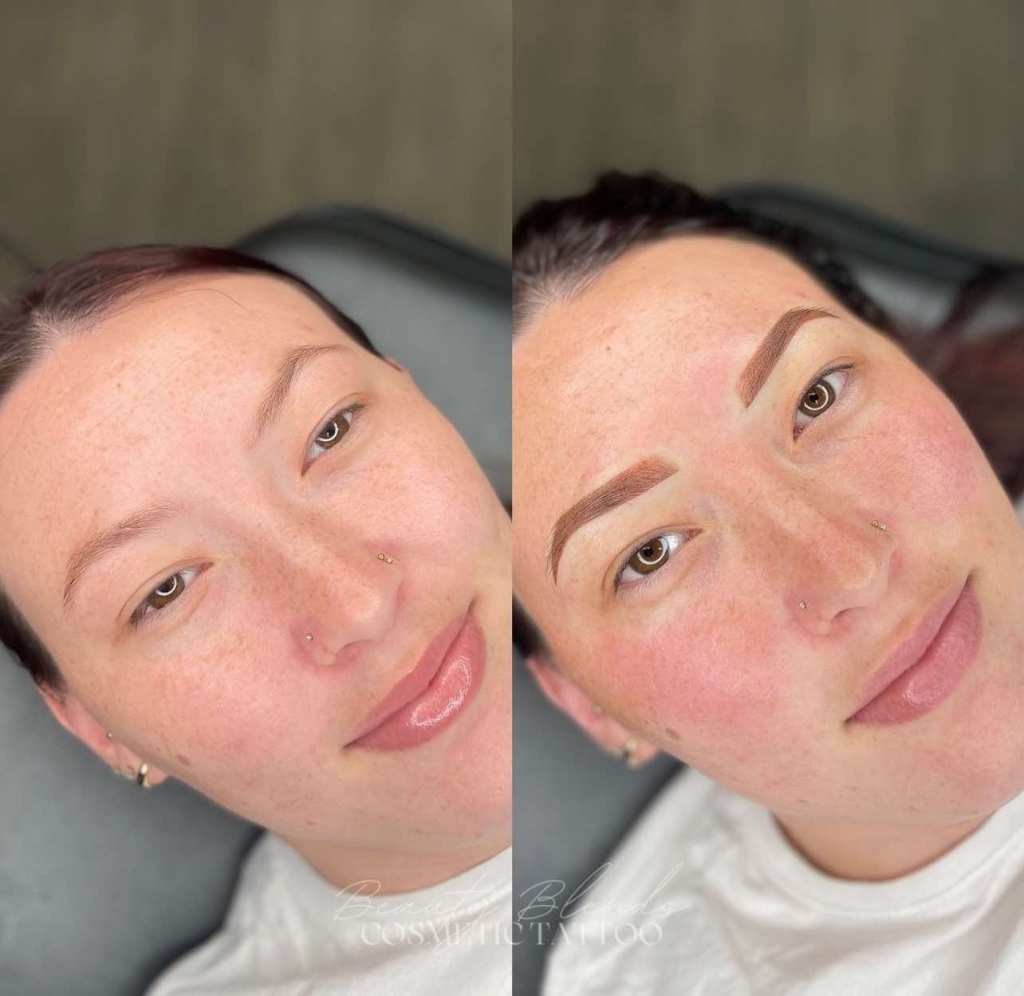 Ombre brows are a natural ‘tint’ looking brow tattoo and are the longest lasting style of cosmetic tattoo. This style of brow resembles a brow tint/henna once healed and is the perfect option for you, if you love the look of fuller and more defined brows. The front of the brow is softer and lighter whilst the tails are darker and defined. This technique is done with a digital tattoo machine and suited for both clients with either full brows or minimal/no brow hair at all. This is the best option for oily skin/ large pores as it tends to hold longer. It is also used frequently for brow corrections and cover ups, if you have an existing brow tattoo done elsewhere.