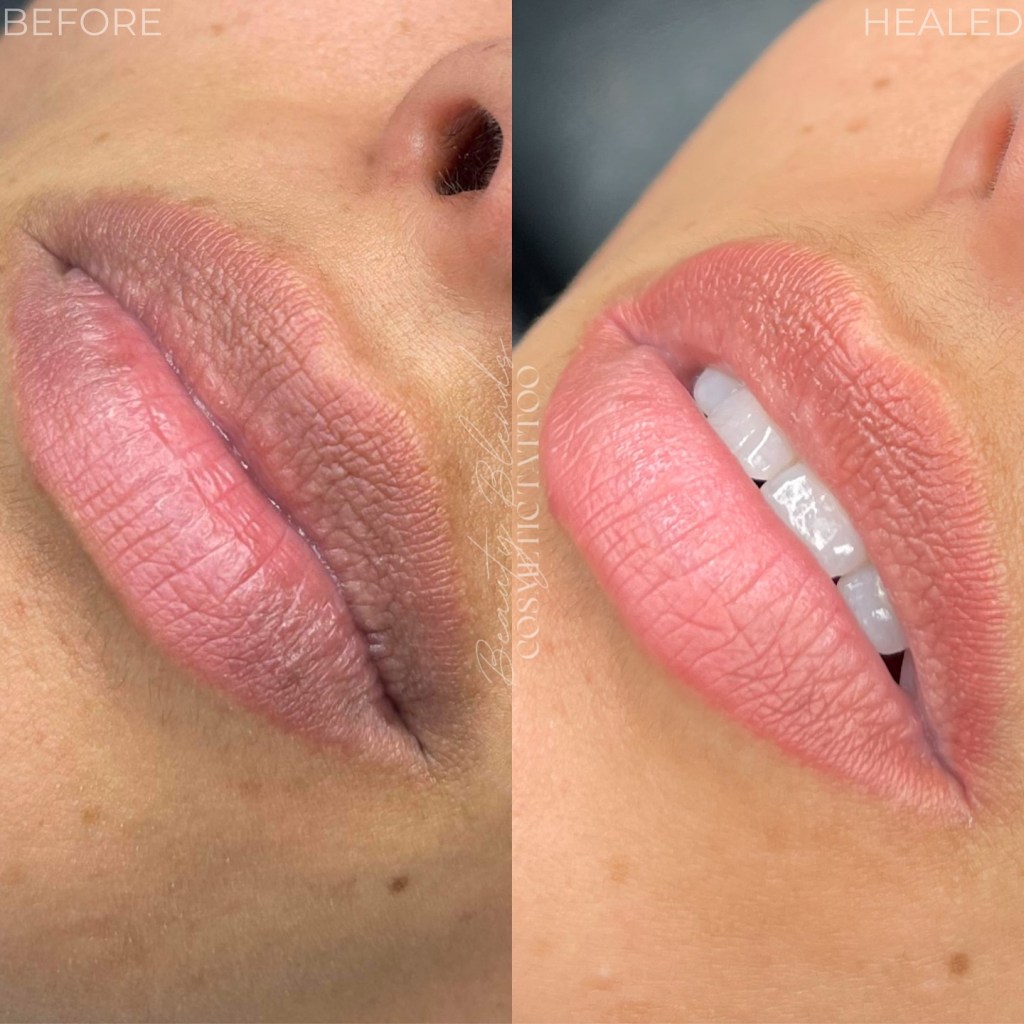 Lip blushing is a two-step process and requires a 6-8 week touch up visit after the initial appointment to complete the full result of long-lasting lip blush.